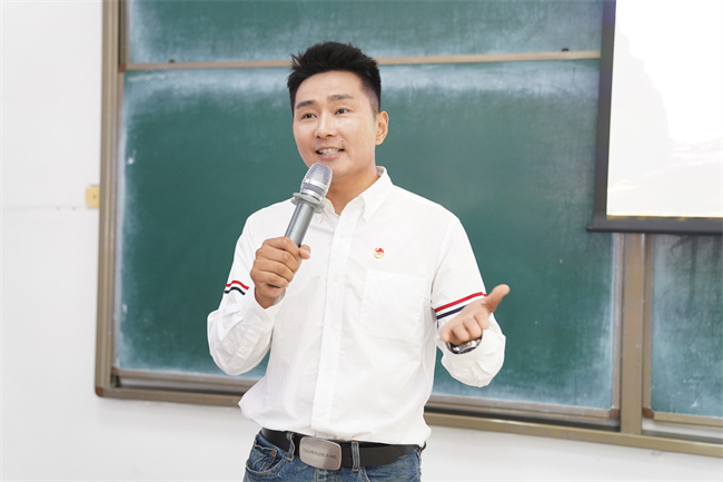 田华鑫从“最初热爱梦想、以热烈至山河、熬夜终将成光”三个方面向同学们分享了自己的学习过程、应征入伍、创业就业的经历,号召同学们将自身发展和国家强军兴军伟大征程相结合,用个人所学服务国防建设,同时鼓励同学们要勇于尝试,多发掘自身特点,把握机会广泛尝试,明确职业目标,以吃苦耐劳的人生态度拼搏未来。