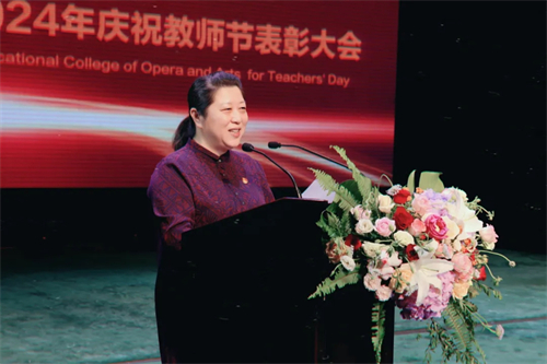 党委书记黄珊珊讲话,对全体教职工在过去一年的辛勤付出表示最真挚的感谢,向所有获得表彰的教师们表示最热烈的祝贺。她表示,学院成绩的取得,凝聚着全院教职员工的心血和汗水,映衬着每一位教职员工的尽职尽责和辛勤付出。希望大家牢记为党育人、为国育才的初心使命,用心领悟和践行总书记提出的教育家精神,努力成为师德师风优良、业务能力精湛、育人水平高超的让人民满意的教师,成为学生成长道路上的良师益友和榜样标杆,用团结奋斗、砥砺前行的实际行动续写学院艺术职业教育高质量发展的新篇章。