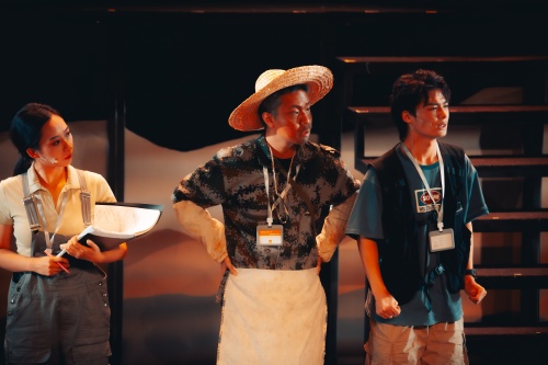 《鼎天鬲地》的创排,是学院深化办学模式和育人方式,强化产教融合、校企合作,推进新时代文化艺术职业教育高质量发展的有力举措。该剧邀请三拓旗剧团创始人赵淼担任艺术指导,剧中的演员除了北戏学生外,还特邀北京曲剧团的张京、万海峰两位具有丰富舞台表演经验的剧团演员加盟演出,在剧中分别饰演邓北村和郭永胜两个重要角色。通过充分发挥校企合作的联动机制,不但为作品的创作提供有力支持,也是学院加快职教改革、推动应用型人才培养的有效途径,同时也是实现出作品、出人才、出效益的专业建设目标的充分彰显。