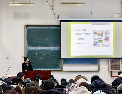 杨老师以“什么是幸福?”这个问题开场,瞬间吸引了全场学生的注意力,大家争相发表自己的观点,有的学生认为有车、有房、有存款就是幸福,也有的学生认为还需要一些精神层面的东西,在热烈的讨论之后,杨老师引导学生们,幸福是一种积极的主观体验,不能以物质上的富足与否来判断,进而引入了积极心理学的概念。
