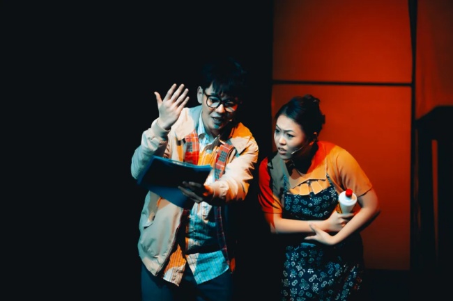 《鼎天鬲地》的创排,是学院深化办学模式和育人方式,强化产教融合、校企合作,推进新时代文化艺术职业教育高质量发展的有力举措。该剧邀请三拓旗剧团创始人赵淼担任艺术指导,剧中的演员除了北戏学生外,还特邀北京曲剧团的张京、万海峰两位具有丰富舞台表演经验的剧团演员加盟演出,在剧中分别饰演邓北村和郭永胜两个重要角色。通过充分发挥校企合作的联动机制,不但为作品的创作提供有力支持,也是学院加快职教改革、推动应用型人才培养的有效途径,同时也是实现出作品、出人才、出效益的专业建设目标的充分彰显。