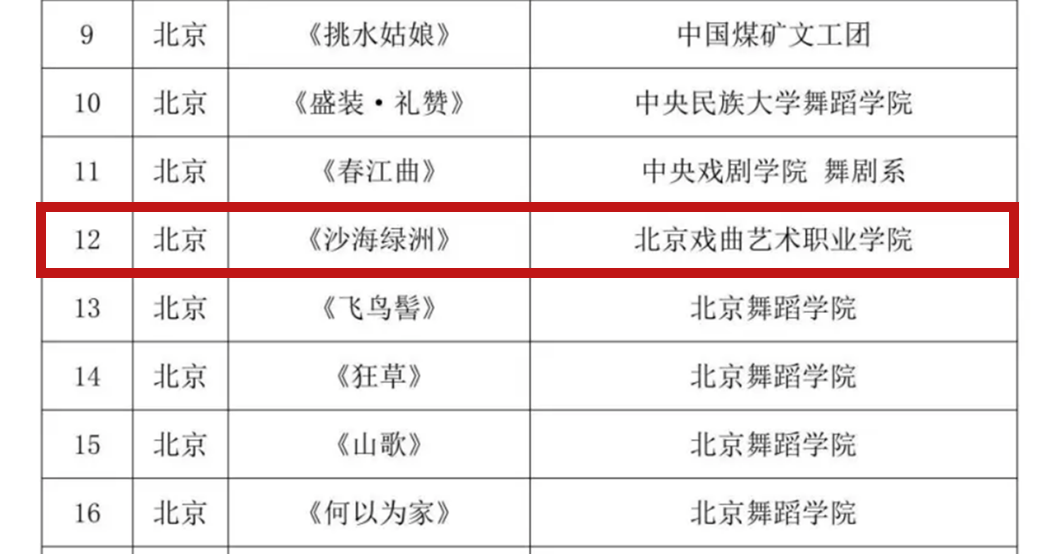 近日,由中国舞蹈家协会主办的第三届中国舞蹈优秀作品集萃活动评审结果揭晓。经专家评审严格遴选,我院舞蹈系原创剧目《沙海绿洲》在全国参选作品中脱颖而出,成功入围优秀作品集萃名录!
