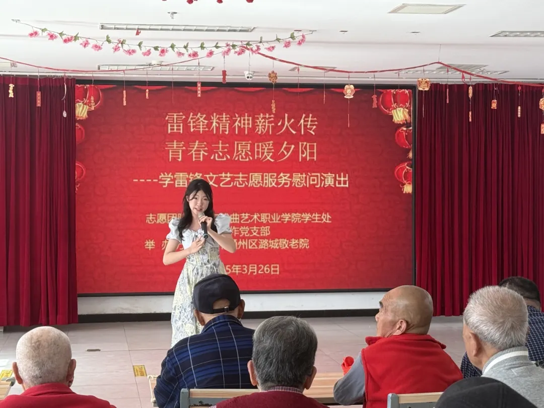 为更好地弘扬雷锋精神,传承尊老爱老敬老的中华传统美德,践行“奉献、友爱、互助、进步”的志愿精神,3月26日下午,学院学生处和学生工作党支部携20余名党员和学生志愿者走进潞城敬老院,开展“雷锋精神薪火传承 青春志愿暖夕阳”慰问演出活动,用青春活力为老人们送去春日温暖。