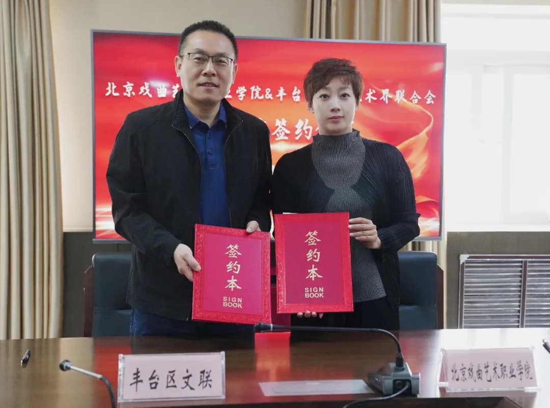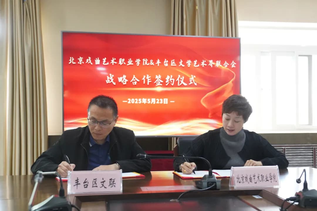 为深入贯彻落实习近平总书记关于文化强国、教育强国、旅游强国建设的重要指示精神,推动丰台区文艺事业繁荣发展,5月23日上午,北京戏曲艺术职业学院与丰台区文学艺术界联合会正式签署战略合作协议。签约仪式在北京戏曲艺术职业学院举行,丰台区文联党组书记、常务副主席谢智刚、北戏党委书记黄珊珊、院长吴蕾及丰台区文联相关工作人员、北戏专业系负责人出席签约仪式。