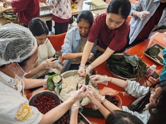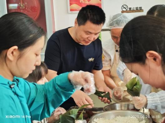 在卷叶裹米的劳动实践中,让端午民俗从古籍记载走入青春指尖的文化传承课。食堂负责人王磊表示:“让学生亲手包粽子,是想让他们在体验中理解端午‘安康’的寓意,比单纯讲解更有意义。”活动结束后,学生们将自己亲手包的粽子分装打包,准备将这份裹着糯米甜香的节日心意向家人和同学们分享。