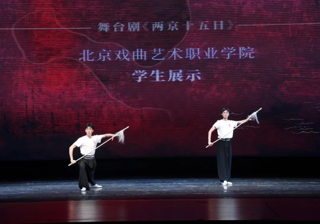 签约仪式后,北戏戏剧影视表演系、京剧系学生现场展示话剧台词与京剧把子功,尽显深厚艺术功底。值得一提的是,他们将以演员身份深度参与该剧排练与巡演。双方领导与演员共同启动舞台剧《两京十五日》2025全国巡演,这也标志着校企合作首个项目正式落地。