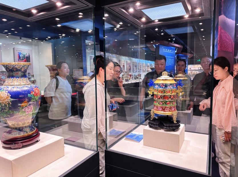 踏入博物馆,厚重的历史气息扑面而来。馆内以时间为脉络,系统梳理了景泰蓝自元代传入中国后,历经明代的兴盛定型、清代的工艺革新,直至现代传承创新的完整发展历程。在古代展区,造型庄重的宫廷御用香炉、纹饰精美的花瓶、流光溢彩的首饰盒等珍贵文物静静陈列,这些昔日皇家贵族专享的器物,以其精湛的工艺、华丽的色彩,无声诉说着景泰蓝作为“燕京八绝”之一的尊贵与典雅,让参观者仿佛穿越时空,窥见古代宫廷生活的精致与奢华。在现代创新展区,一系列融合了当代设计理念与生活美学的景泰蓝作品令人眼前一亮。既有将传统吉祥纹样与简约现代造型相结合的家居摆件,也有融入科技元素、兼具实用性与艺术性的文创产品。这些作品打破了人们对景泰蓝“古板”“厚重”的固有印象,展现出非遗技艺在新时代背景下的无限可能与创新活力。