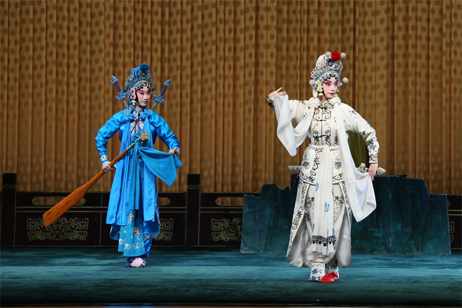 《金山寺》又名《水漫金山》《降香水斗》。许仙受法海煽惑,上金山寺进香,被法海软禁禅堂。白娘子携小青至寺,恳求法海放回许仙。法海坚决不允。白娘子忍无可忍,聚集水族,水漫金山;法海亦召天兵天将应战。白娘子终因身怀有孕,体力不支败退。