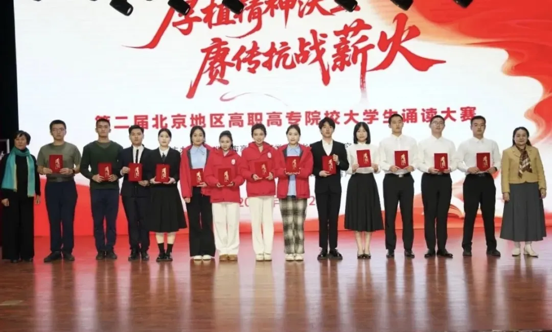 11月26日在北京卫生职业学院隆重举行决赛,比赛现场我院选手紧扣“厚植精神沃土、庚传抗战薪火”的主题,用生动的语言与真挚的情感展现出对抗战精神的深刻理解和对中华优秀传统文化的热爱。他们以饱满的热情和精湛的诵读技巧,生动的诠释了作品中蕴含的坚定力量与精神内核,充分展现了我院学生良好的精神风貌和深厚的家国情怀,最终在近20所院校、33个决赛作品中喜获一等奖。我院京剧系学生韩静、白湘妃、赵青燕、董竹溪获网络人气奖,我院教师获优秀指导教师奖。