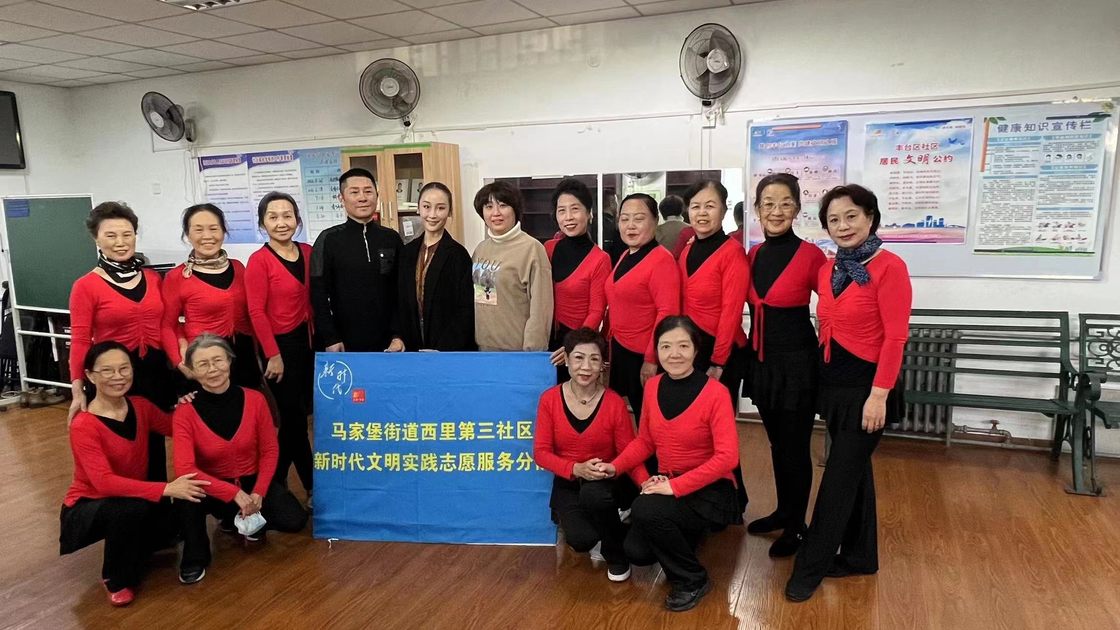 为丰富马家堡西里第三社区居民的业余文化生活,北京戏曲艺术职业学院机关第二党支部积极参与社区文化建设,2023年2月28日上午,支部党员谢志刚、张晶和积极分子凌童等同志应马家堡街道西里第三社区党支部(简称:“马三”社区党支部)邀请为社区舞蹈队进行指导培训。