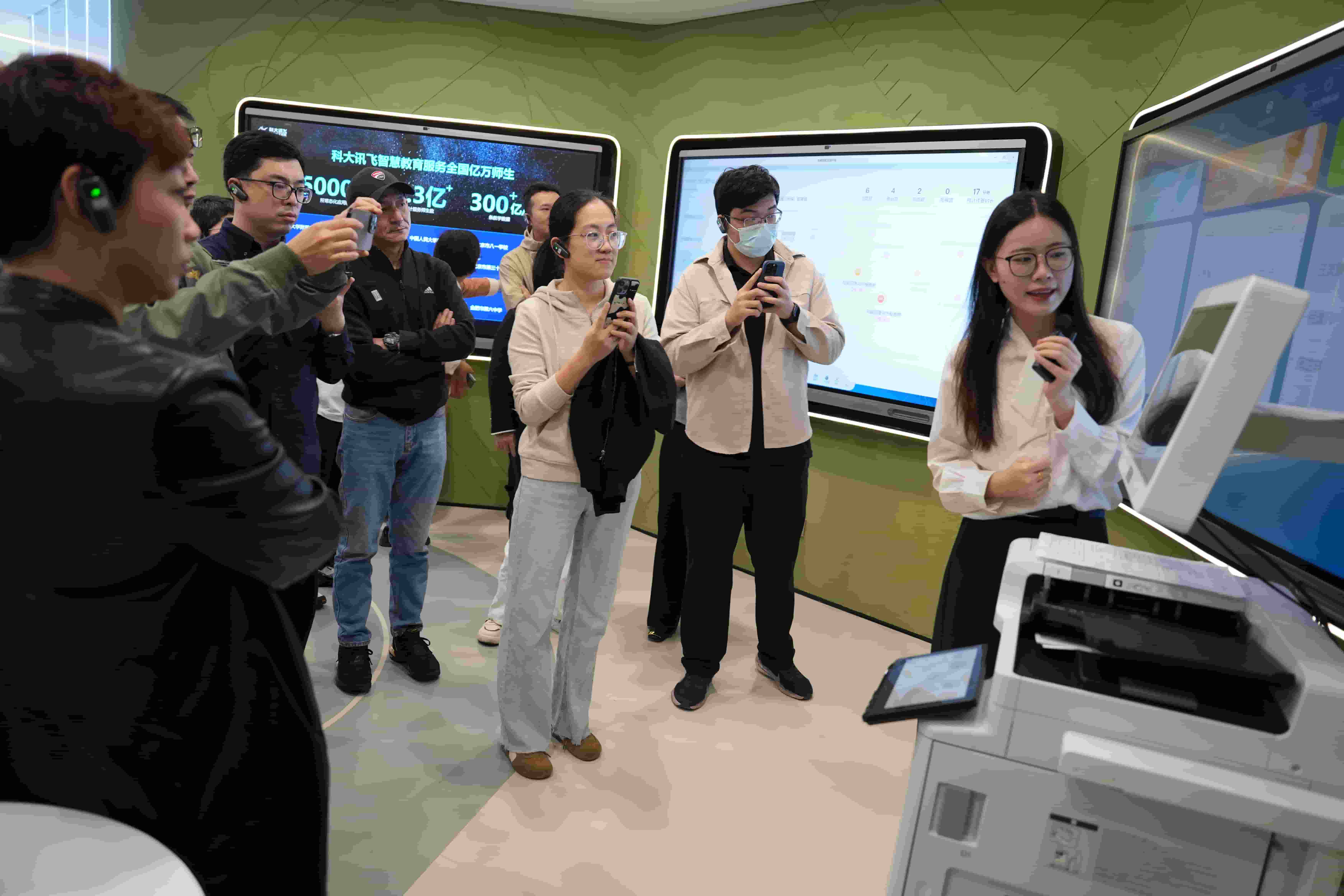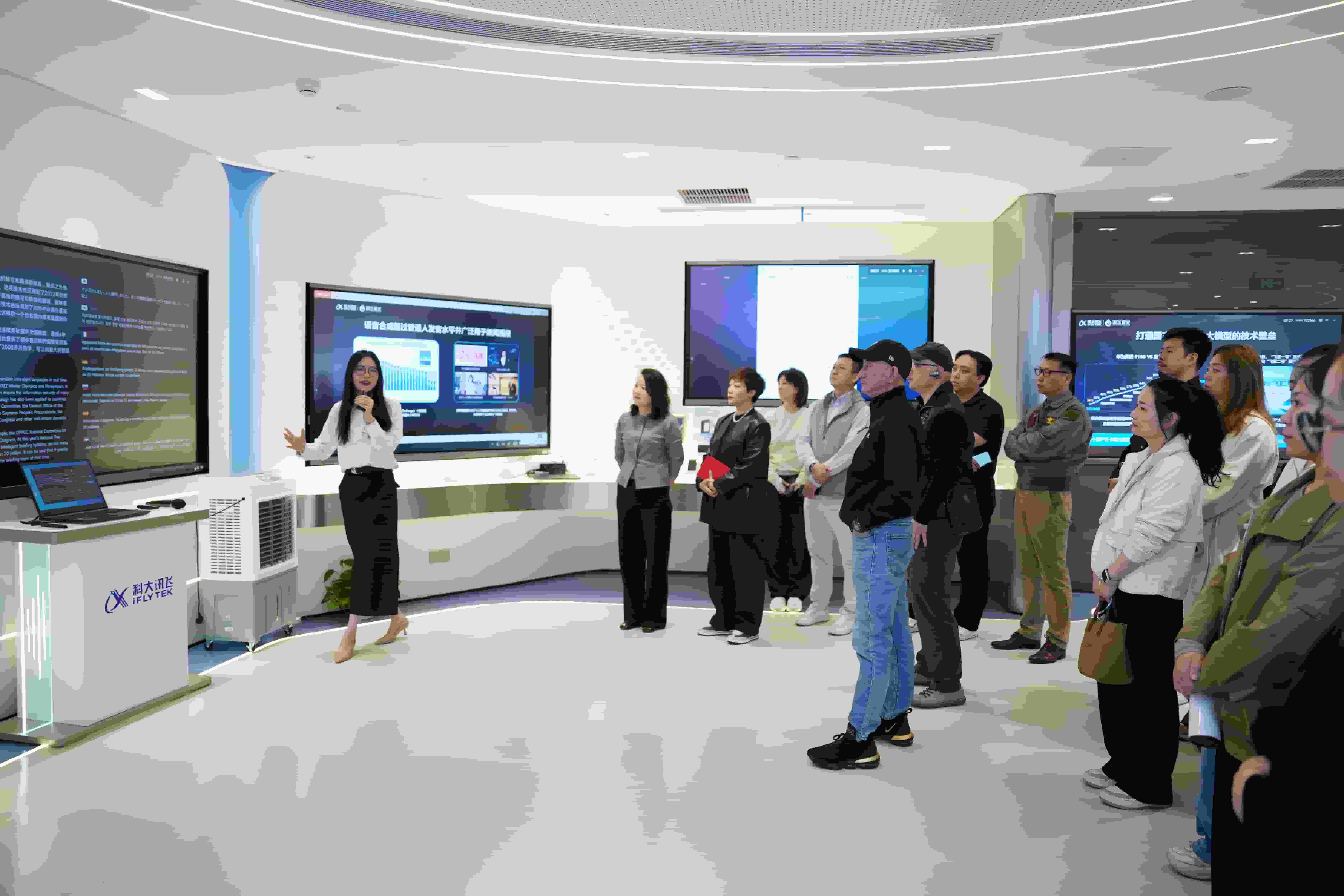 调研团队首先参观了科大讯飞人工智能体验中心,考察了语音识别、星火大模型等核心技术在教育领域的应用。大家深切直观地感受到了人工智能快速发展给各个行业带来的变化,赞叹于新产品、新技术在教育领域的应用已经渗透到课堂教学、人才培养、考评管理的各个环节。