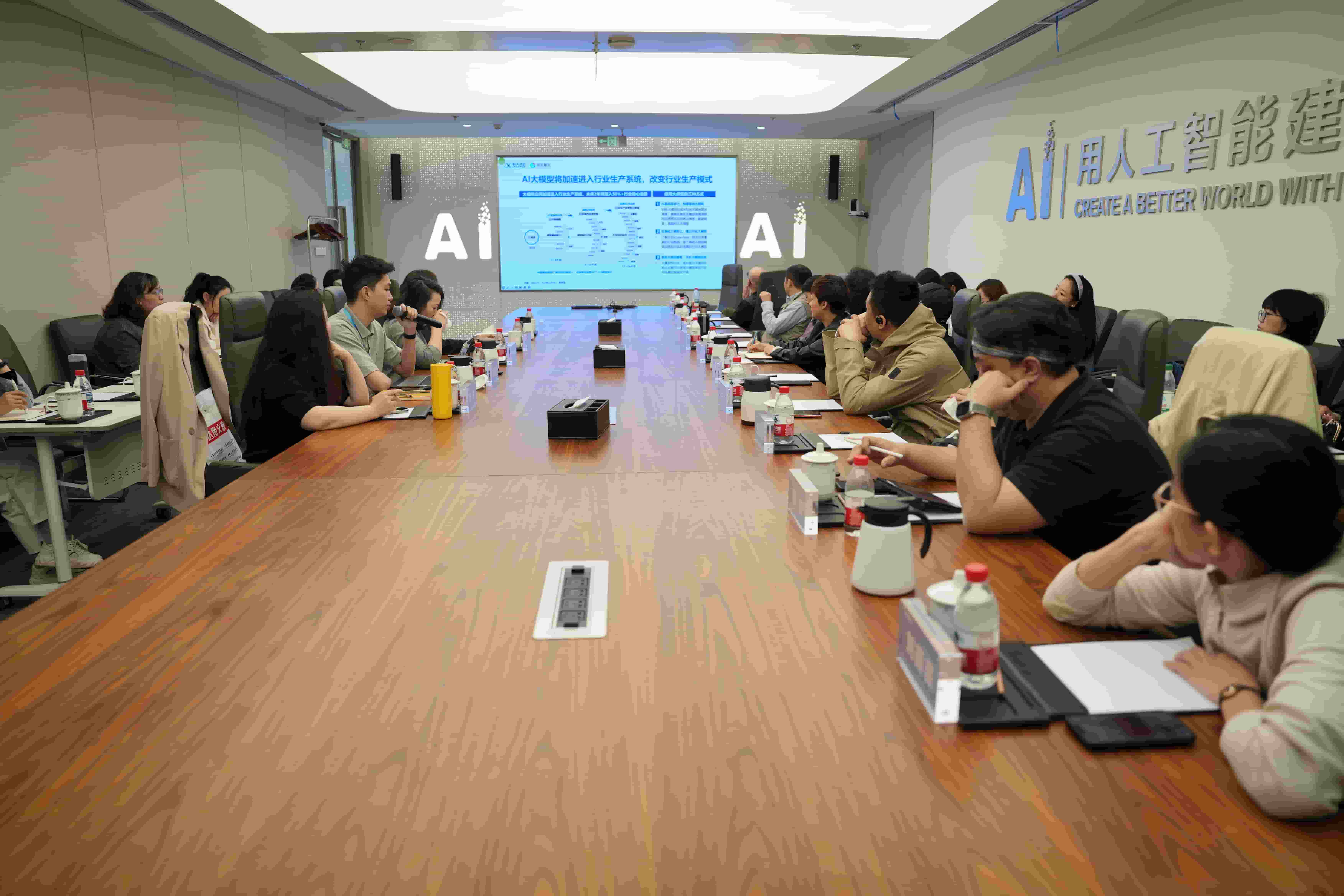 在随后的座谈环节,科大讯飞工作人员做了“AI赋能高等教育数字化转型与高质量发展”的专题报告,分享了星火大模型在人才培养、教育教学、科研创新、管理服务、国际合作交流等多个领域的典型应用案例。科大讯飞党委副书记、副总裁任萍萍认真听取了学院深化职业教育改革的数智化需求,表示愿与学院共同探索人工智能+职业教育的应用场景创新,结合学院专业特色定制数字化教学新生态解决方案。