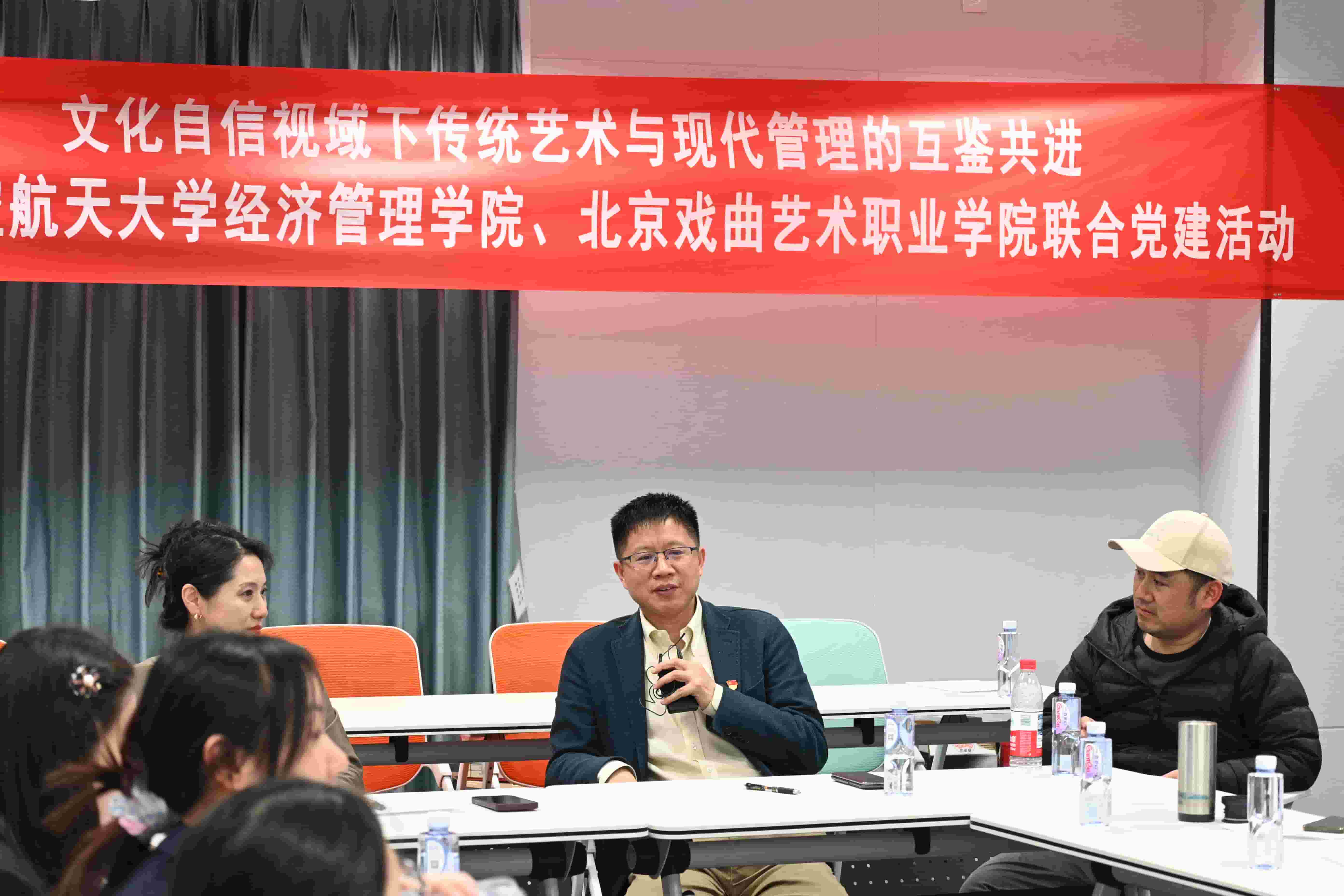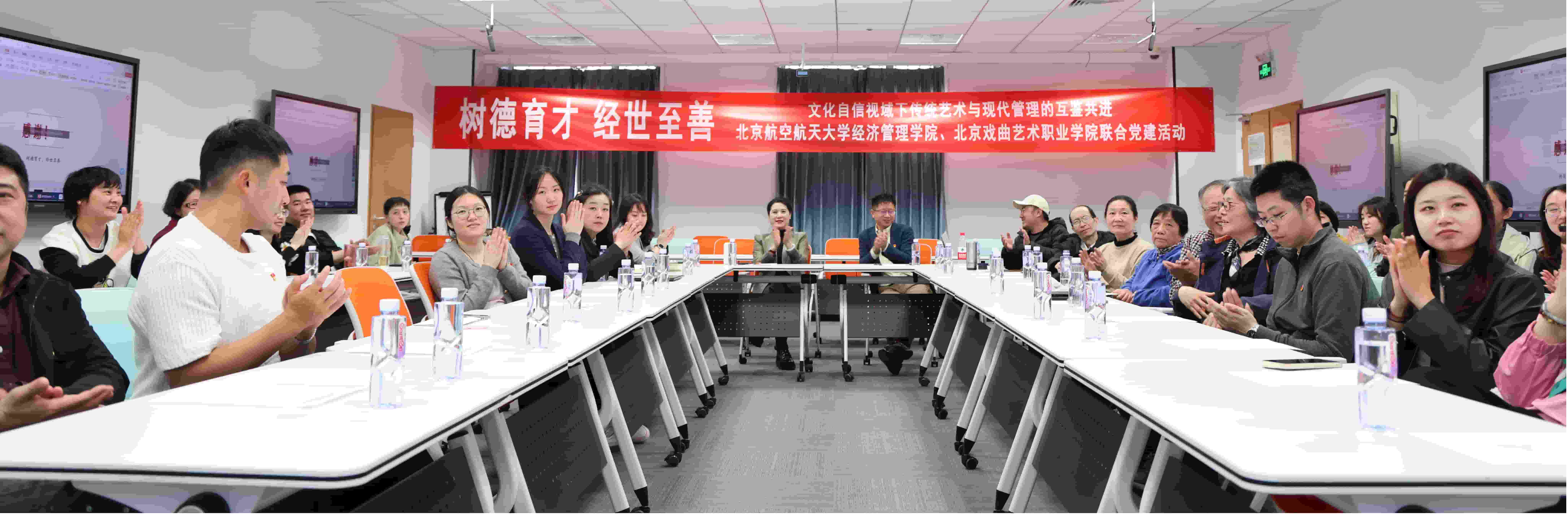 2025年4月8日下午,北京戏曲艺术职业学院副院长许翠带队,北戏人事处党支部、地方戏曲曲艺党支部、党委办公室党支部、学院办公室党支部、学生工作党支部和教职工团支部的党员团员同志们一起,来到北京航空航天大学学院路校区,与北航经济管理学院博士生党支部和离退休党支部开展交流活动。