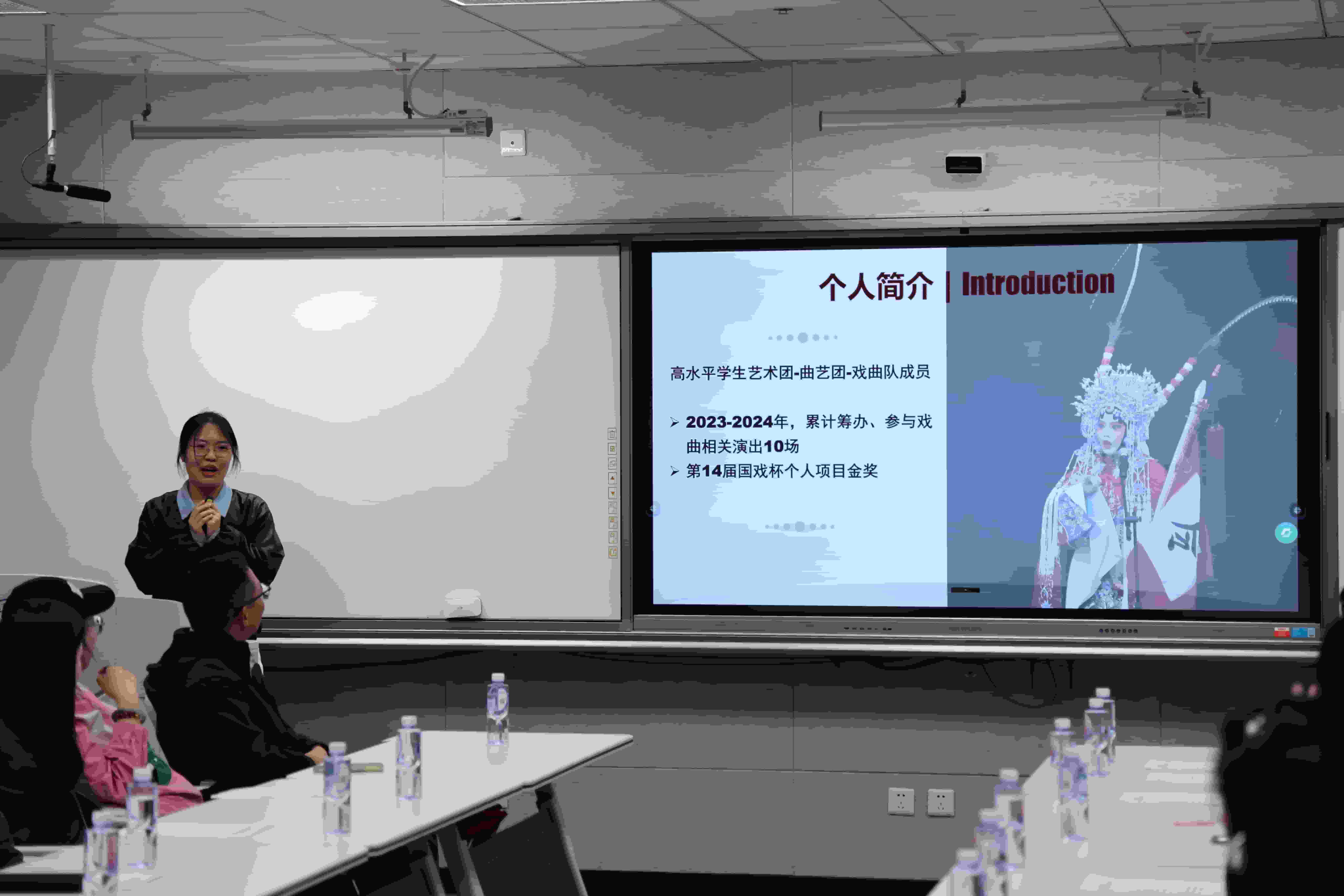 北航经管学院博士生周辰月讲述了自小学习戏曲的故事,并介绍了北航学生曲艺团戏曲队举办过的多场演出活动。戏曲艺术能在理工院校蓬勃发展,足以见得传统文化的旺盛生命力。