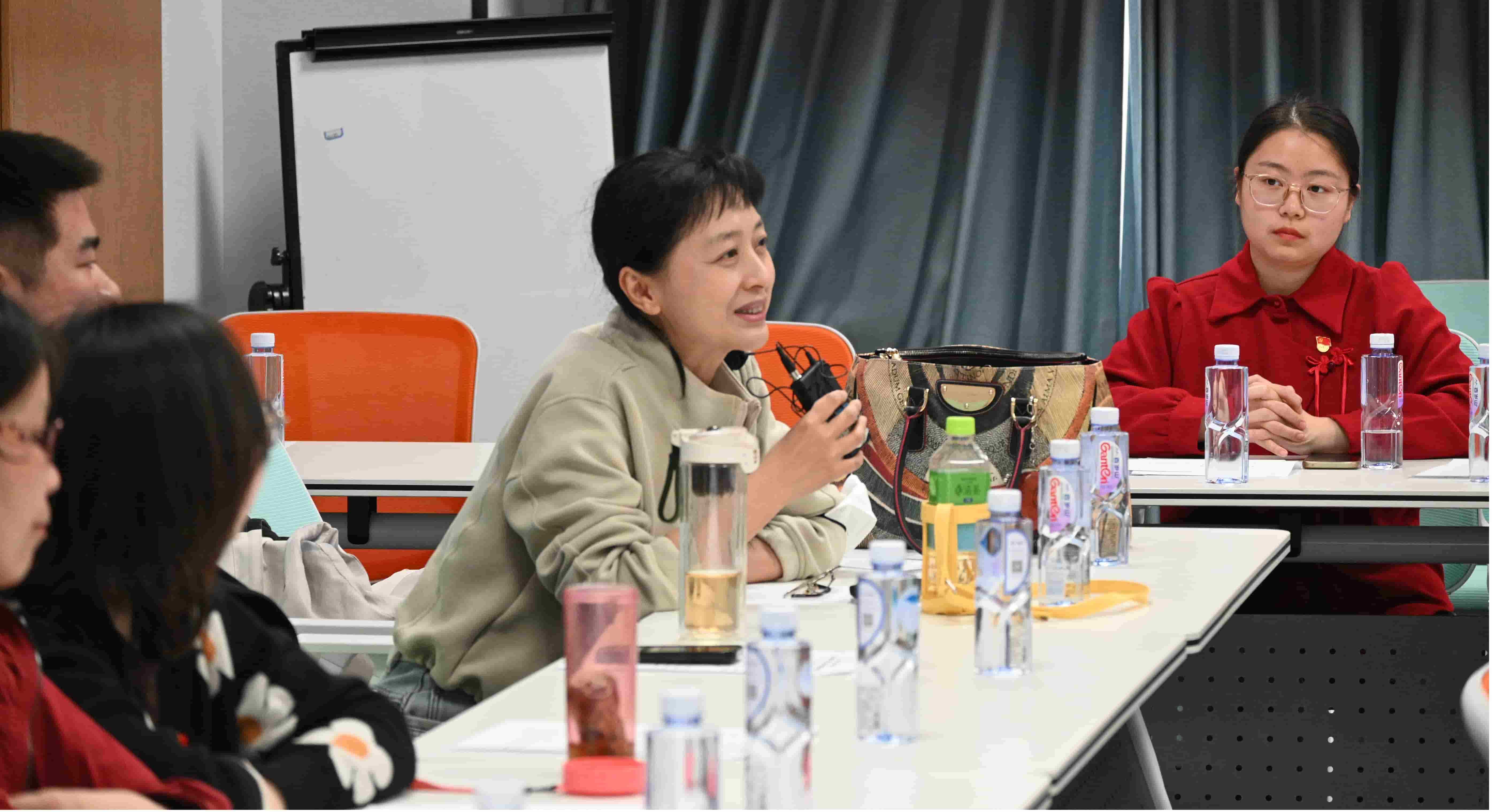 自由交流环节,北航经管学院的博士生同学向北戏提出问题:“贵校如何平衡传统戏曲文化的传承与现代表演艺术的创新?”北戏曲艺系主任、地方戏曲曲艺党支部书记张怡回答此问题时,形象化地描述了北戏校园中随处可见的传统与现代融合之景——拎着扇子茶壶的老教师、拿着戏曲道具的年轻学生,在高科技课堂软件的助力下,共同欣赏几百年形成的传统艺术,并在一代代教学中潜移默化地传承从艺与做人的道理。