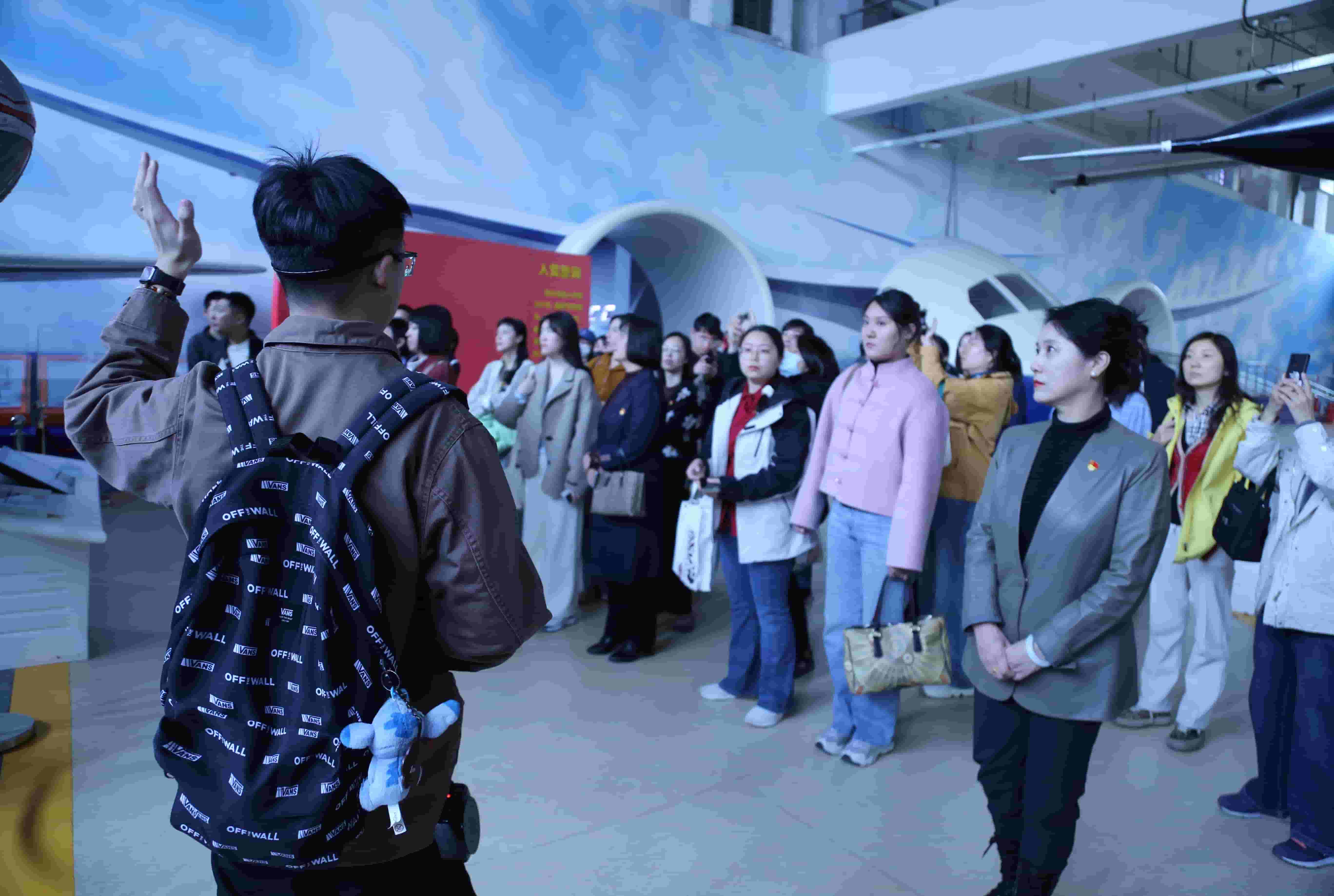 在讲解员的带领下,北戏教职工走进航空航天馆,参观北航收藏的各类珍贵展品,了解了北航师生仅用100天自主设计制造“北京一号”运输机的故事,纷纷被航空航天精神而感动。