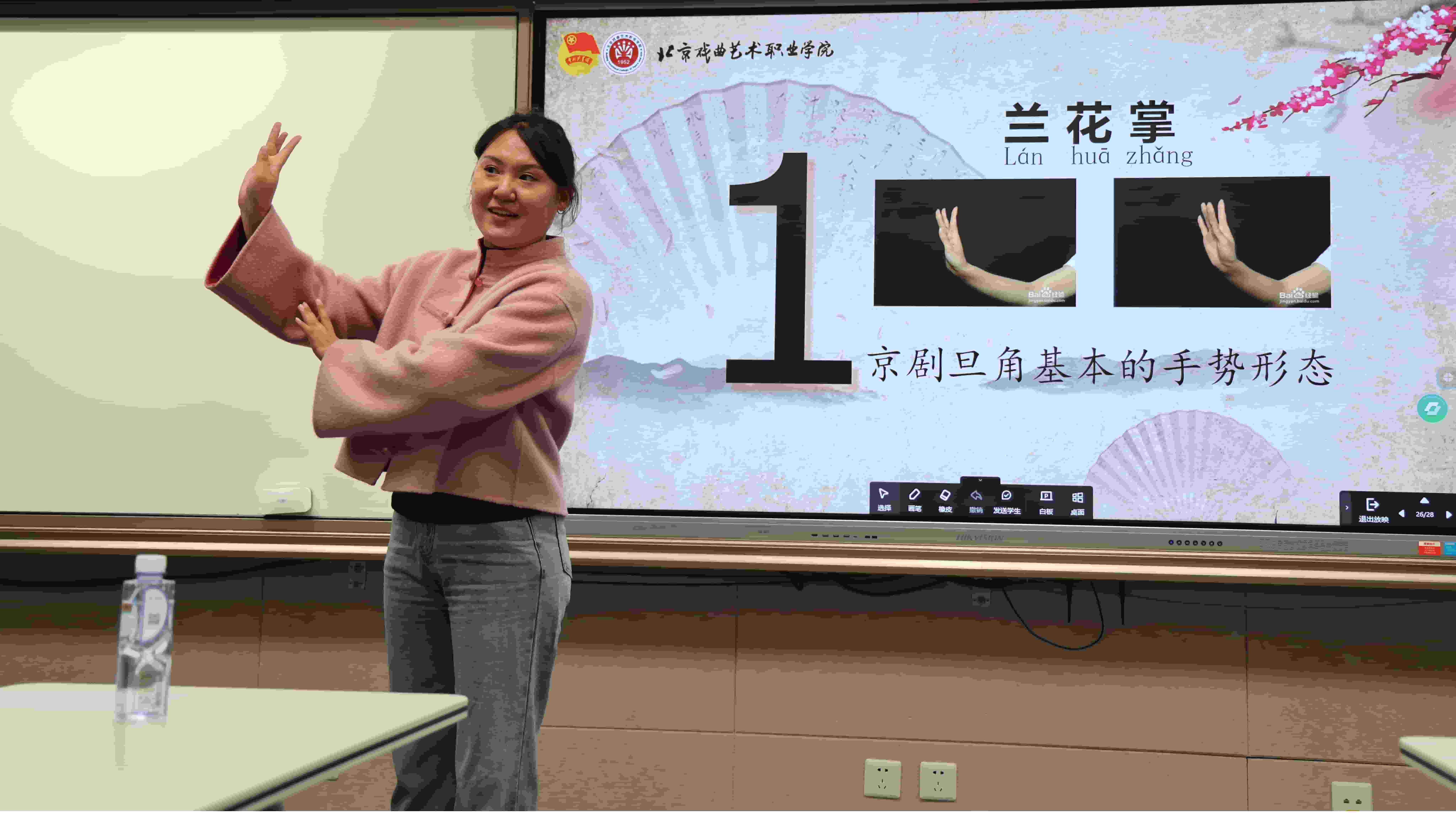 北戏京剧系教师、教职工团支部团员孟栩羽带来了京剧行当和基本手势的知识分享,北戏地方戏曲系教师、地方戏曲曲艺党支部党员翟婷婷带来了藏族舞蹈《格萨尔王》的表演。现场气氛热烈,掌声不断。