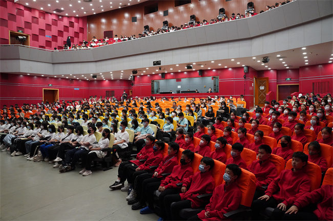 党员和全校师生在认真聆听