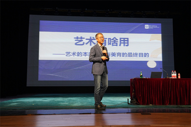为推动主题教育走深走实,为进一步解放思想、开阔思路、不断创新、提升能力,当天下午,学院请来了著名音乐美学家、音乐心理学家、教育学家周海宏教授为全体党员、全校师生做题为“迈入新时代的音乐美育”讲座。从个人生活追求、下一代素质教育、建设美丽中国三个角度,诠释了新时代艺术美学教育的重要性。他指出,艺术不仅能陶冶个人情操,丰富生活趣味;也能指导艺术教育工作,帮助孩子认识社会成长的丰富性,激发潜力,减少抑郁;还与建设美丽中国息息相关,通过提升党员干部审美能力,可以更好地提升自身的能力和水平。