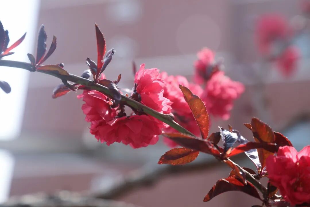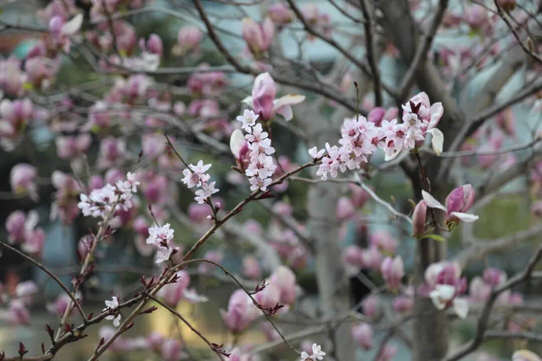 近日,校园内春意盎然,繁花似锦,校园瞬间化作一片浪漫花海,吸引众多师生驻足欣赏、沉醉其中,为校园增添了一抹亮丽且诗意的风景线。