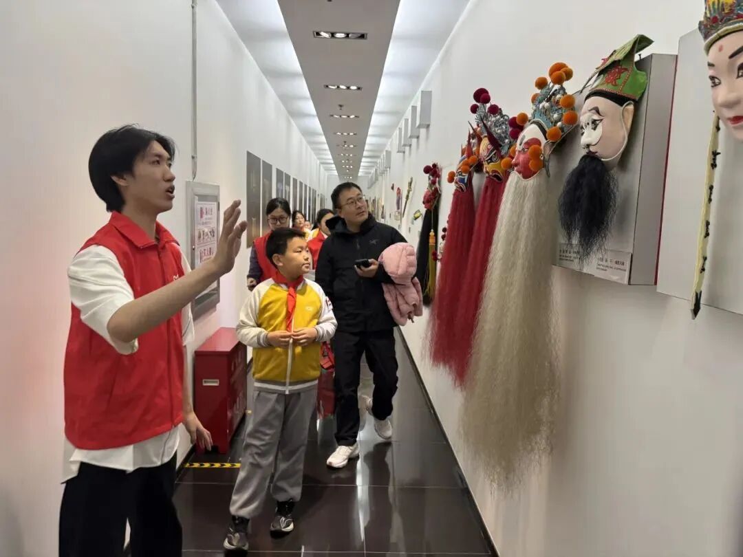 活动现场,北戏的学生志愿者为参观的学生及家长进行了生动细致的讲解。孩子们通过观看珍贵的图片资料、京剧服饰、道具,以及戏曲台前幕后模型和感受“一桌二椅”的体验,深入了解了京剧的行当分类、表演特色及发展历程。家长们也积极参与,与孩子一同感受传统文化的独特魅力。一位参与活动的小同学兴奋地表示:“原来京剧这么有趣!我特别喜欢花脸的脸谱。”学生家长也表示,“这次参观真好,增加了不少京剧知识,对京剧有了一个较为全面的了解。”