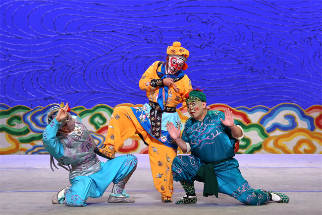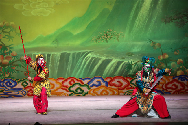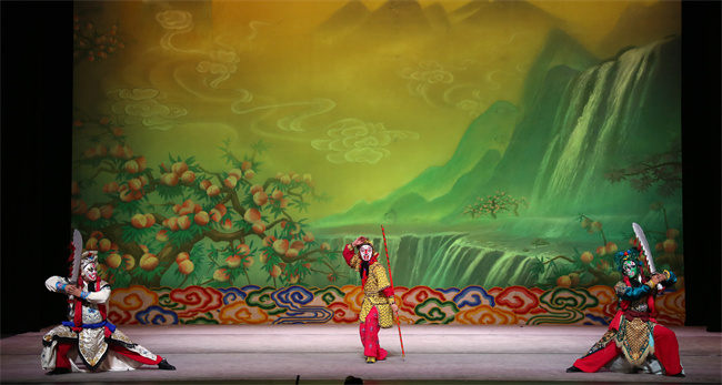 10月21日晚,京剧《齐天大圣》在天桥艺术中心上演,该剧取材于四大名著名著《西游记》,汇集了北京京剧院魏学雷、曹阳阳和北京戏曲艺术职业学院的李丹三大美猴王,他们共同呈现了从石猴出世到大闹天宫中的孙悟空形象。现场演出赢得了观众热烈的掌声和声声叫好!