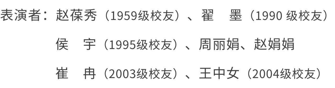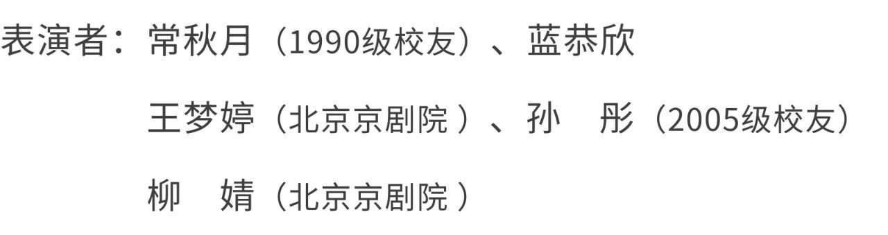 整台演出由《序章》《第一篇章 向阳花开吐芬芳》《第二篇章 寒来暑往惊鸿业》《第三篇章 浑然天成艺留香》《尾章》四个部分组成。在《序章》部分,北戏校友艾兵、左旭、张一平、张佳芸等领衔的北京京剧院乐队和北京戏曲艺术职业学院京剧系、音乐系师生合作表演器乐合奏曲《铿锵献爱》,拉开了整台演出的序幕。《第一篇章 向阳花开吐芬芳》中,开场为戏曲风采《天女散花》,北戏学生赵家玉饰演天女,紧接着,北戏中青年教师高彤、刘亚新、曾宝玉、岳芃晖、崔馨月、陈晨、舒展、张泽桐等带领一批优秀在校学生同台表演。第17届全国戏曲“小梅花”十佳演员、北戏校友杨腾,以及北京京剧院马派传人、北戏校友刘孟千一,梅派第四代传人巴特尔也登台献艺,一同为观众带来京剧代表剧目片段,包括《白蛇传•游湖》片段、《断密涧》片段、《三岔口》片段、《胭脂宝褶》选段,以及在本系列展演中已经和观众见过面的《雏凤凌空》片段、《牡丹亭•游园》《贵妃醉酒》片段等。《第二篇章 寒来暑往惊鸿业》中,北京京剧院优秀青年演员、北戏校友包飞、沈文莉、韩巨明、王怡、康静、孙震、包岩、李小培、王昊、张梓溪、孟宪腾以及北京京剧院演员谭筱羽、刘明哲,北戏教师哈福丽、王文端,为观众献上各个京剧行当代表剧目,包括《铡美案》选段、《珠帘寨》选段、《钓金龟》选段、《春闺梦》选段、《玉门关》选段、《穆桂英挂帅》选段、《李逵探母》片段。《第三篇章 浑然天成艺留香》中,同为北戏校友的北京京剧院老一辈艺术家和他们的弟子同台表演,有文丑名家黄德华同弟子梅庆羊、孙世民、舒展表演的京剧丑行经典人物片段,老旦名家赵葆秀同弟子翟墨、侯宇、周丽娟、赵娟娟、崔冉、王中女演唱的《八珍汤》选段。老生名家张学津的两位弟子宋昊宇、穆雨共同演唱的《甘露寺》选段,荀派名家孙毓敏的弟子常秋月、蓝恭欣、王梦婷、孙彤和北京京剧院柳婧演唱的《红娘》选段,以及武生名家叶金援弟子周恩旭与北戏师生一同表演的武戏集锦——《京朝武韵》。《尾章》部分,是北戏校友,北京市第十届政协副主席,北京人民艺术剧院前任院长、北京市文联前任主席,北京市文化局前任局长张和平作词、北戏校友宋昊宇作曲、北戏校友朱江配器的原创京韵歌曲——《松柏庵•题记》,由北戏副院长、京剧名家许翠,北戏教师崔馨月和北京京剧院知名演员翟墨、宋昊宇、孟宪腾演唱。