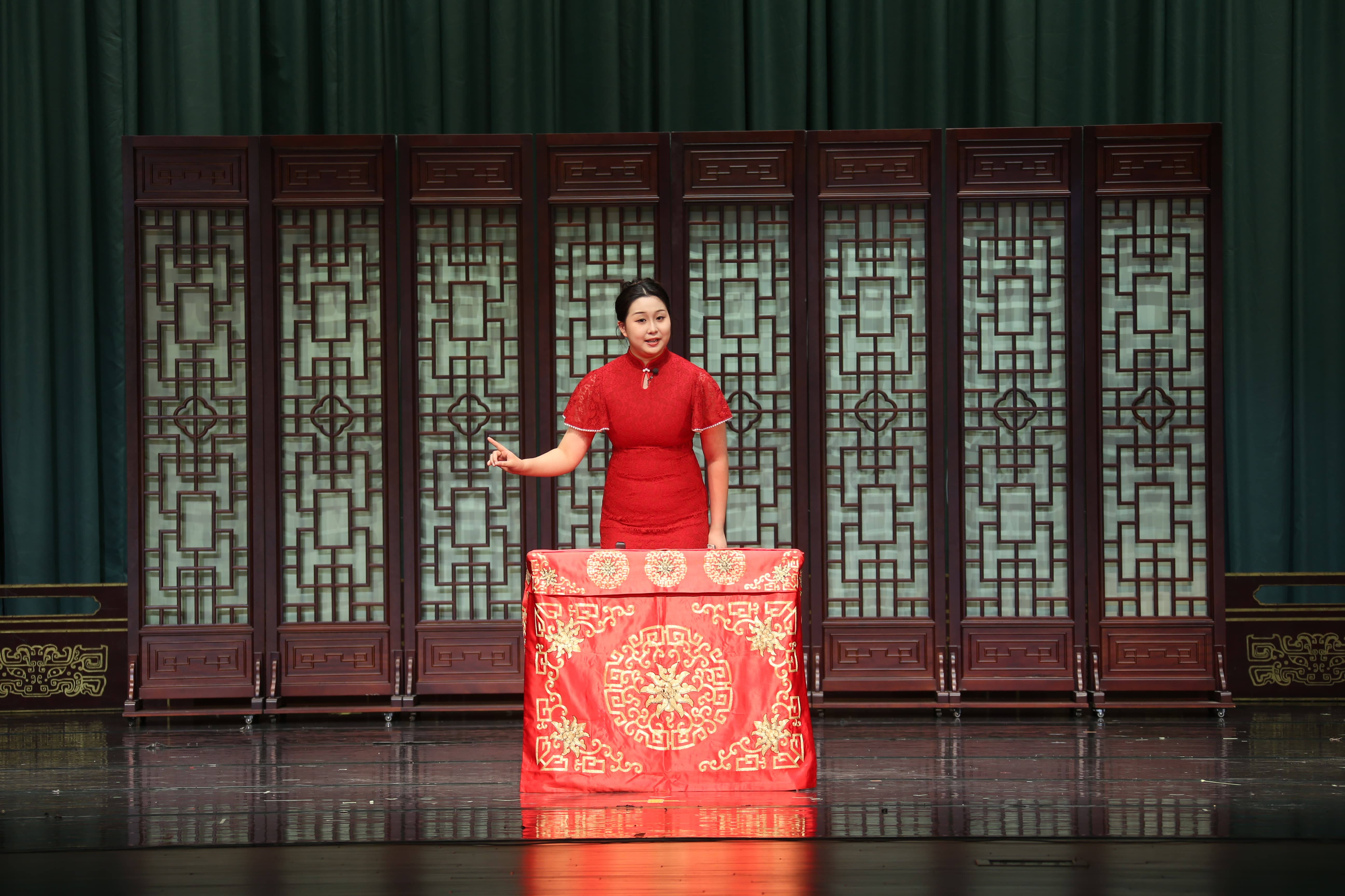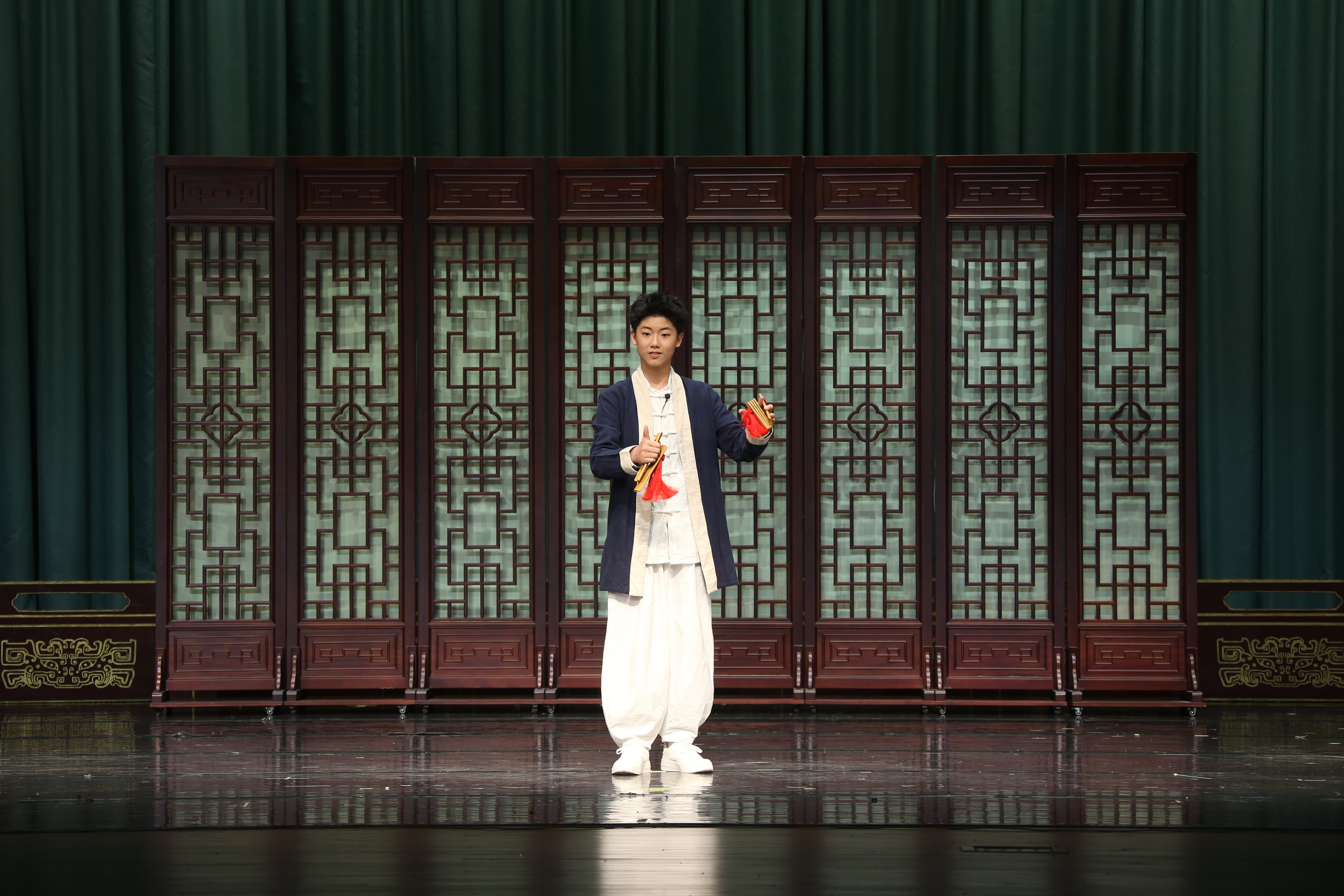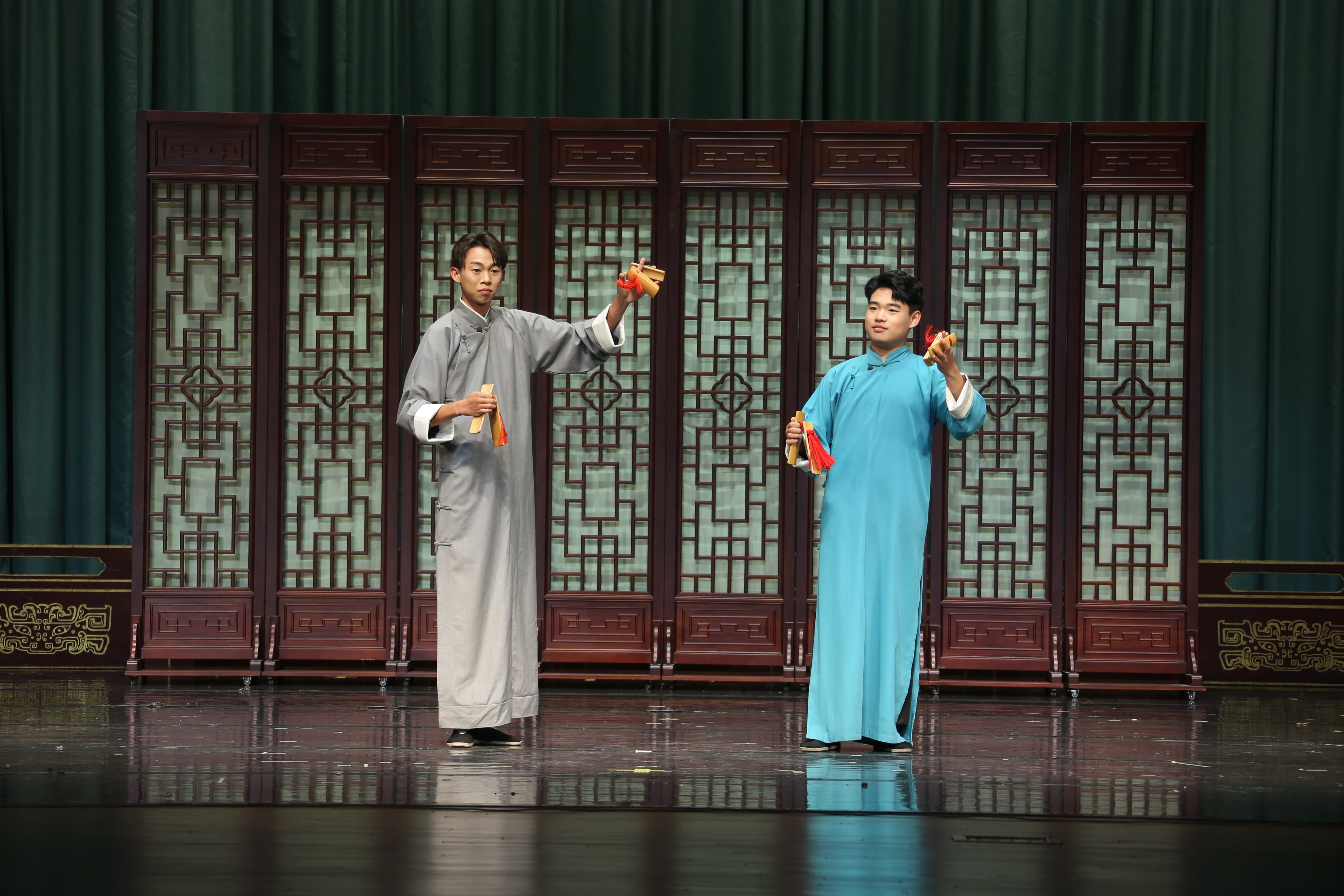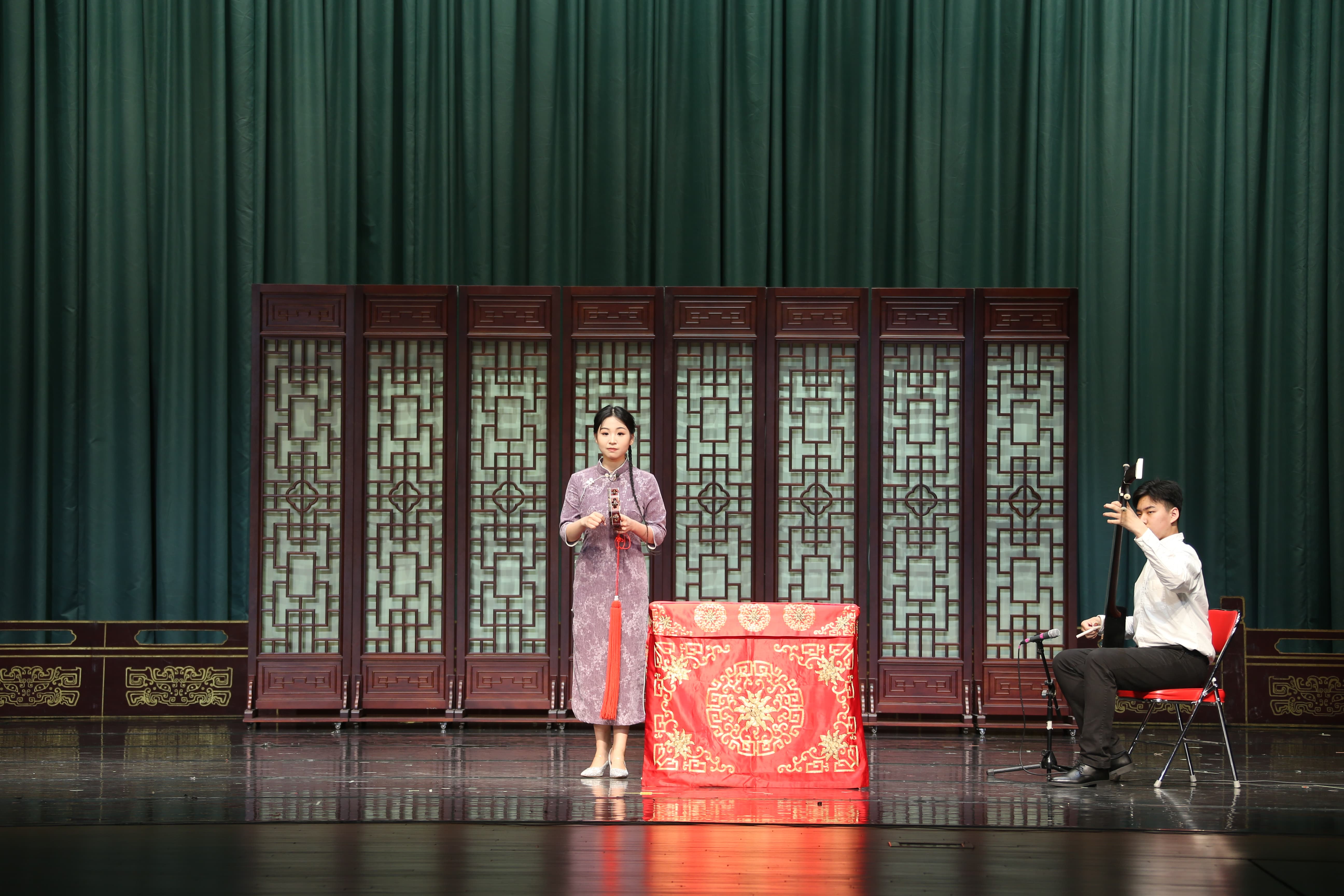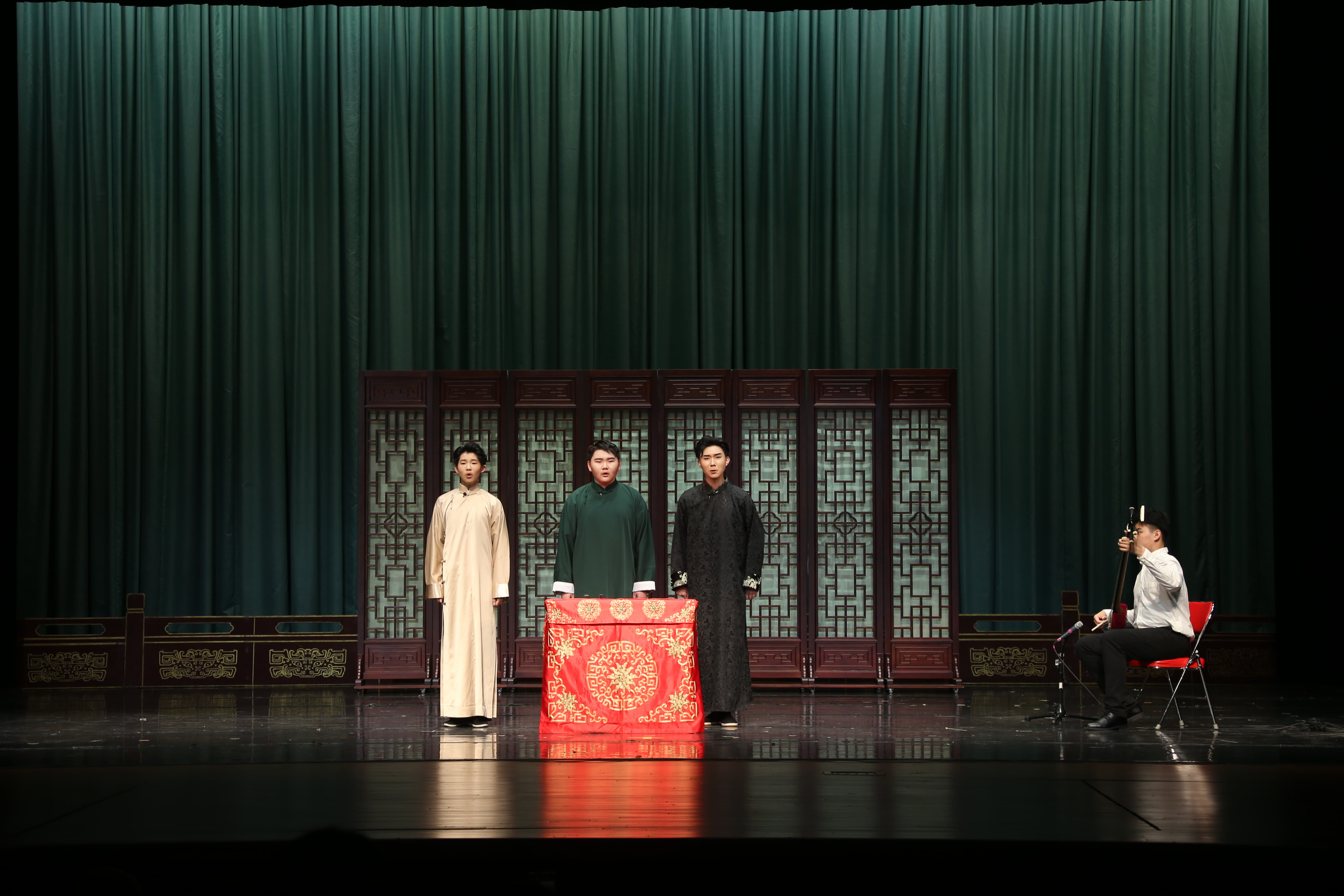 本学期“北戏有戏”教学实践演出之曲艺专场的系列汇报中,既有课堂保留的传统教学曲目,也有学生历年来参加全国展演比赛的获奖作品。从个人表演单一曲种小型节目,到团队组合表演集单弦、相声、小品等各曲种综合的大型节目;从传统作品,到老师们自编自导的新创作品都在演出中呈现。通过舞台实践的锻炼,不仅使学生的业务基功能力和综合表演能力得到提升,也提升了教师们团队合作能力和创作能力,这正是学院和系部重视艺术实践,并将舞台实践与课堂教学紧密结合的意义所在。