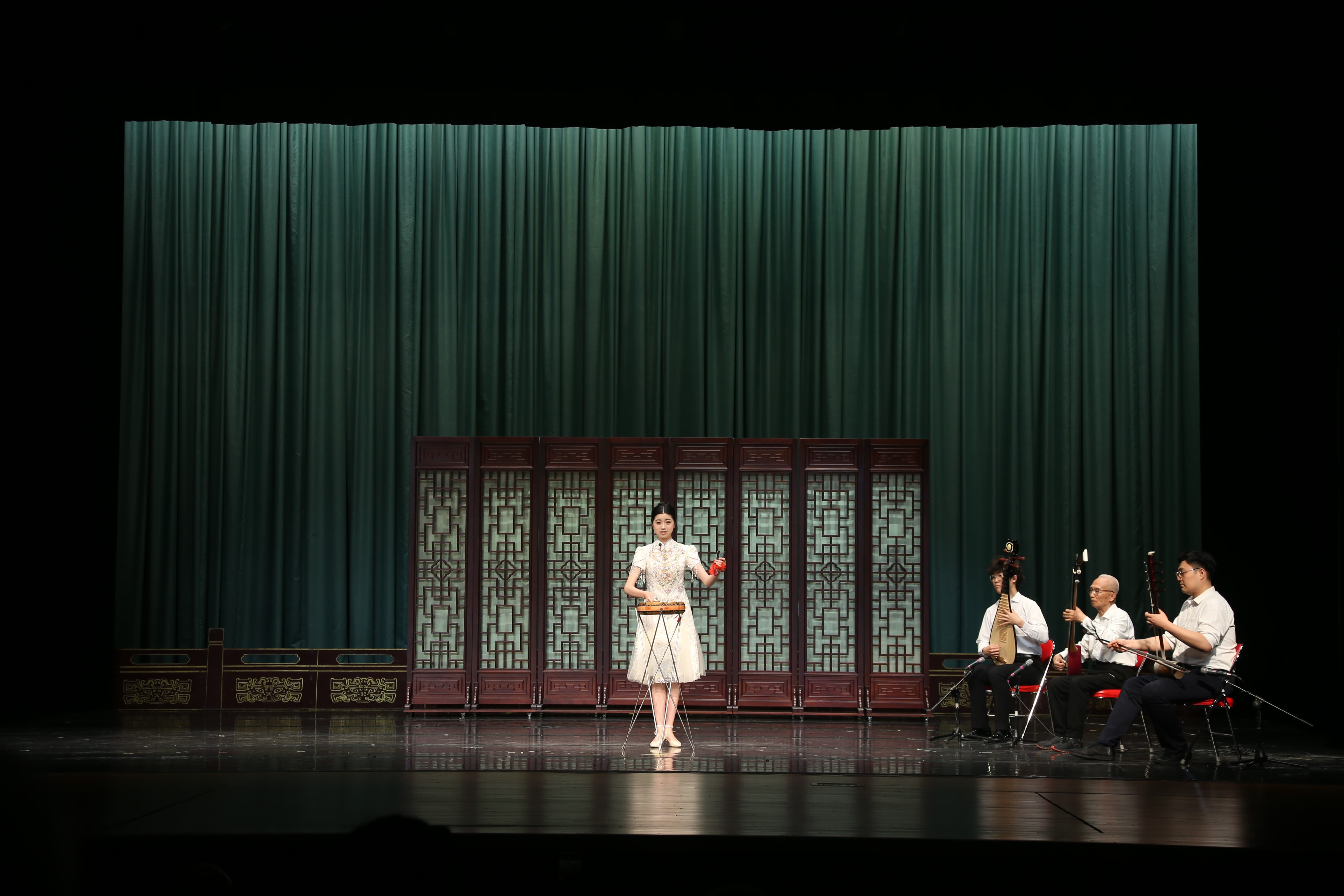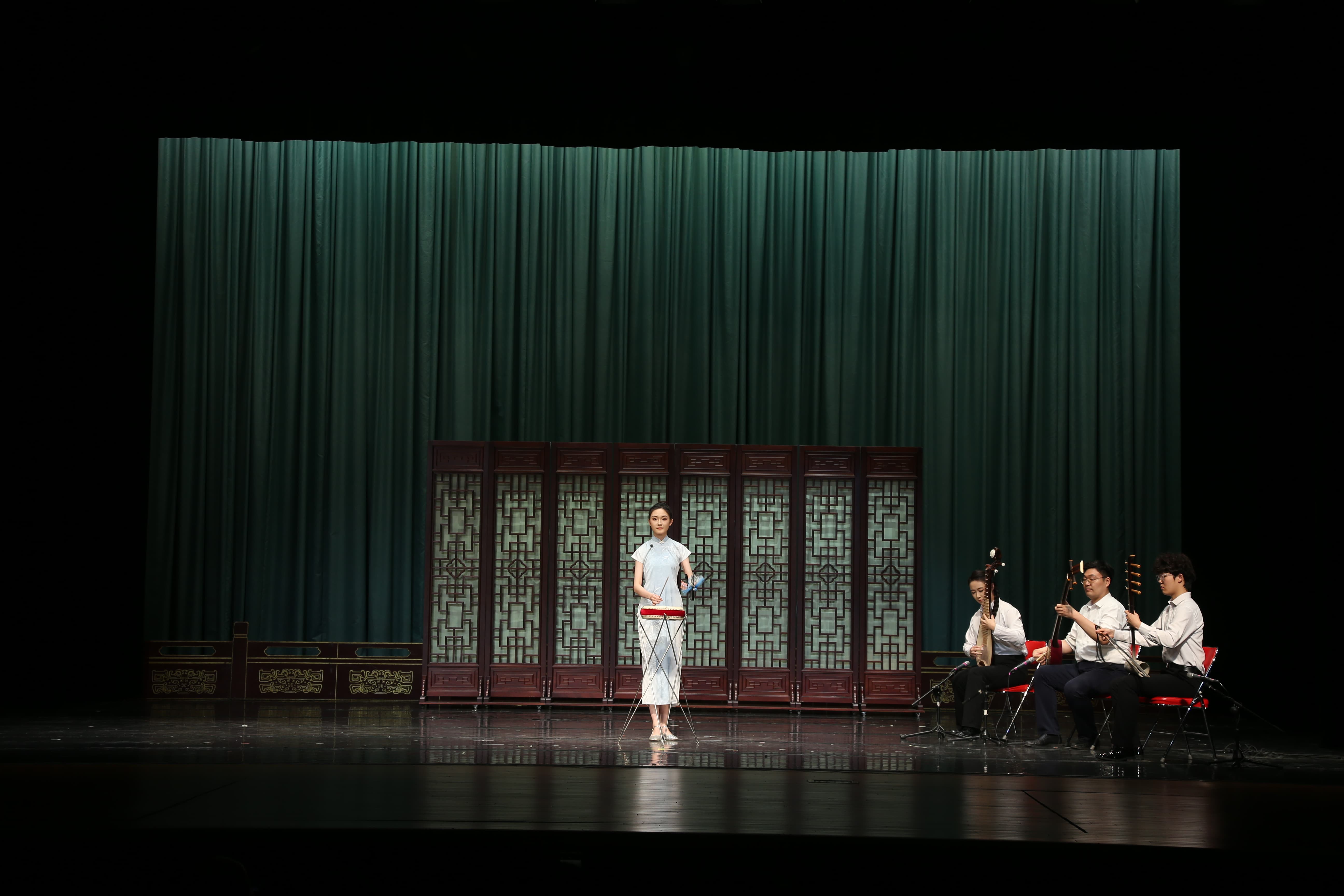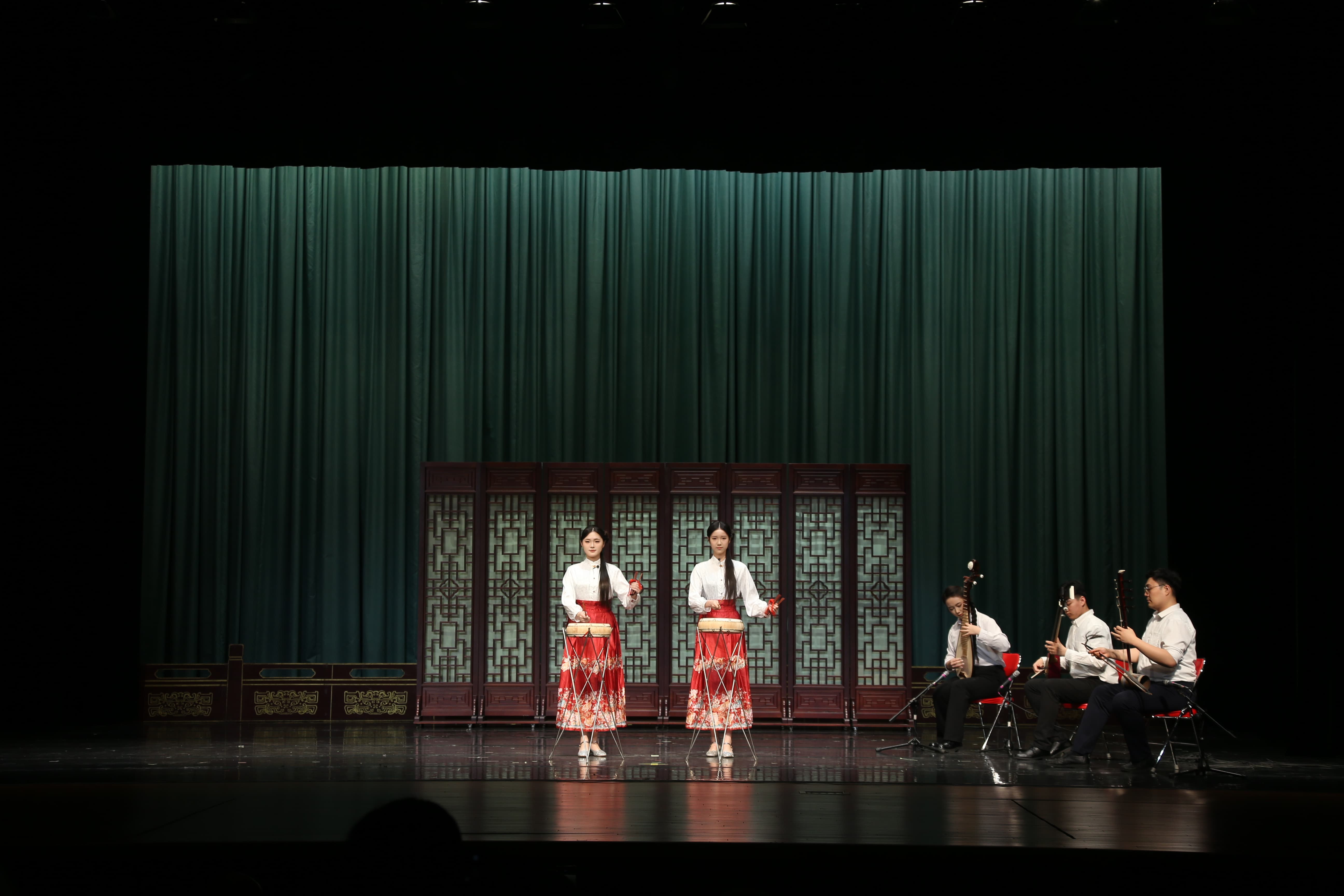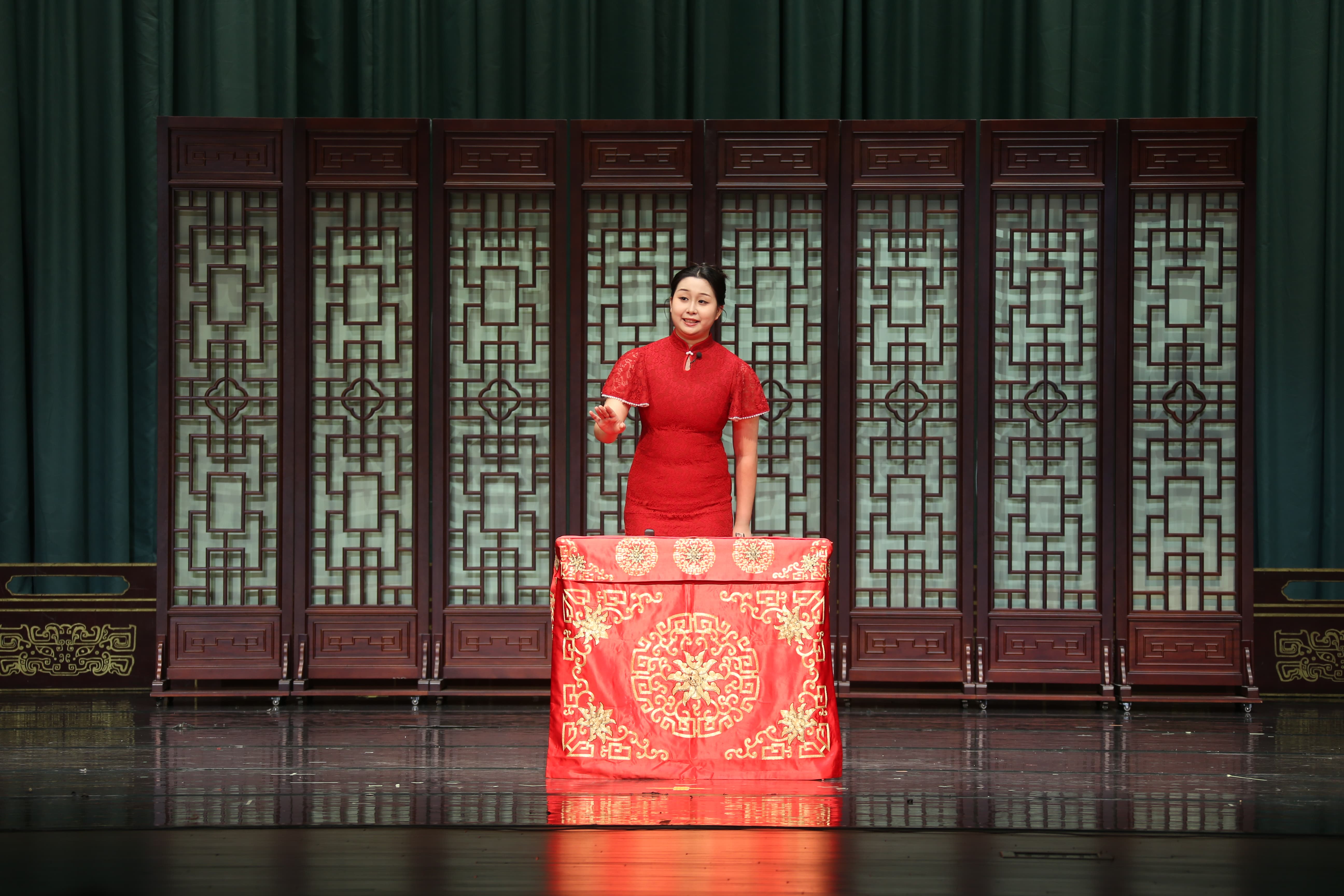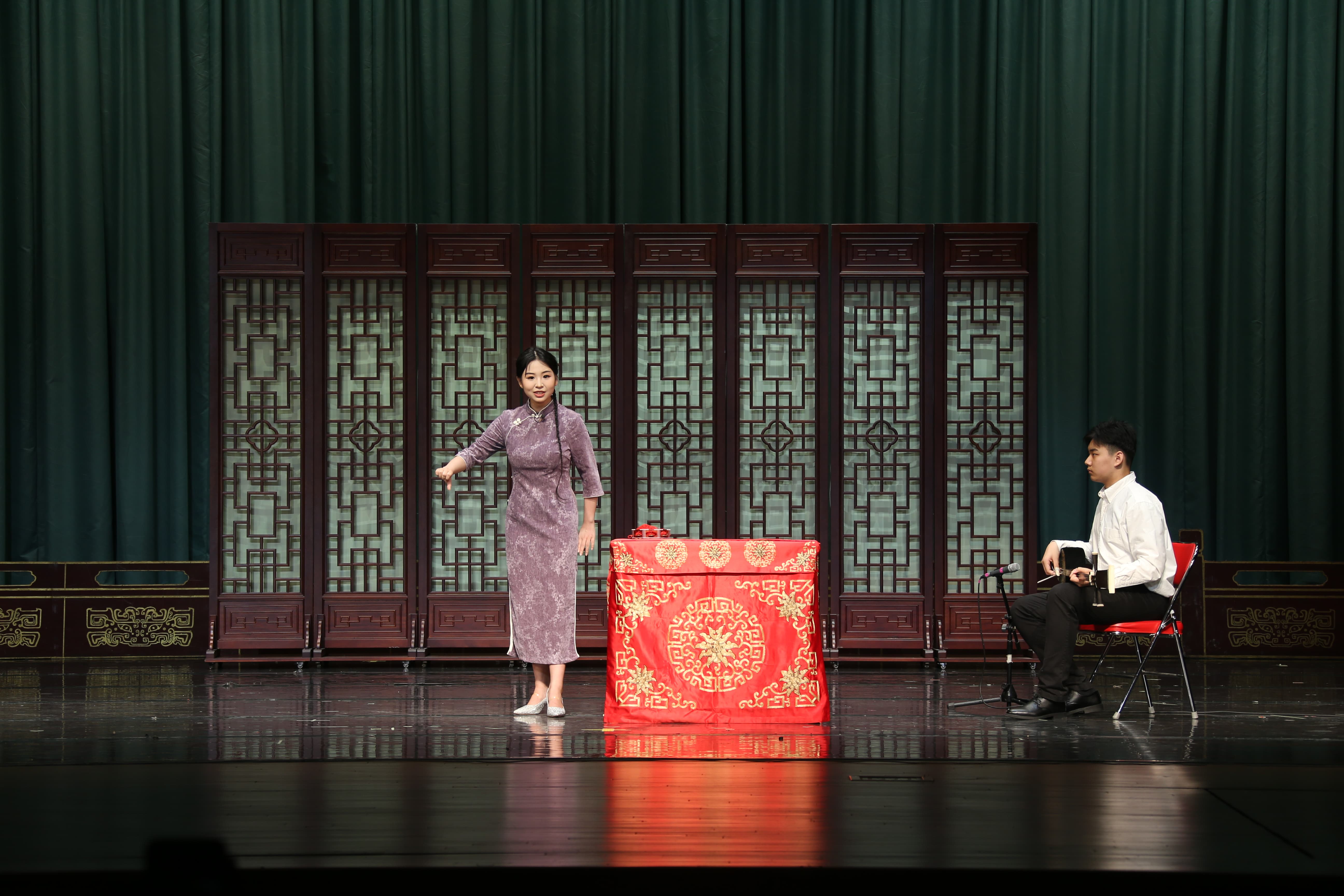 本学期“北戏有戏”教学实践演出之曲艺专场的系列汇报中,既有课堂保留的传统教学曲目,也有学生历年来参加全国展演比赛的获奖作品。从个人表演单一曲种小型节目,到团队组合表演集单弦、相声、小品等各曲种综合的大型节目;从传统作品,到老师们自编自导的新创作品都在演出中呈现。通过舞台实践的锻炼,不仅使学生的业务基功能力和综合表演能力得到提升,也提升了教师们团队合作能力和创作能力,这正是学院和系部重视艺术实践,并将舞台实践与课堂教学紧密结合的意义所在。